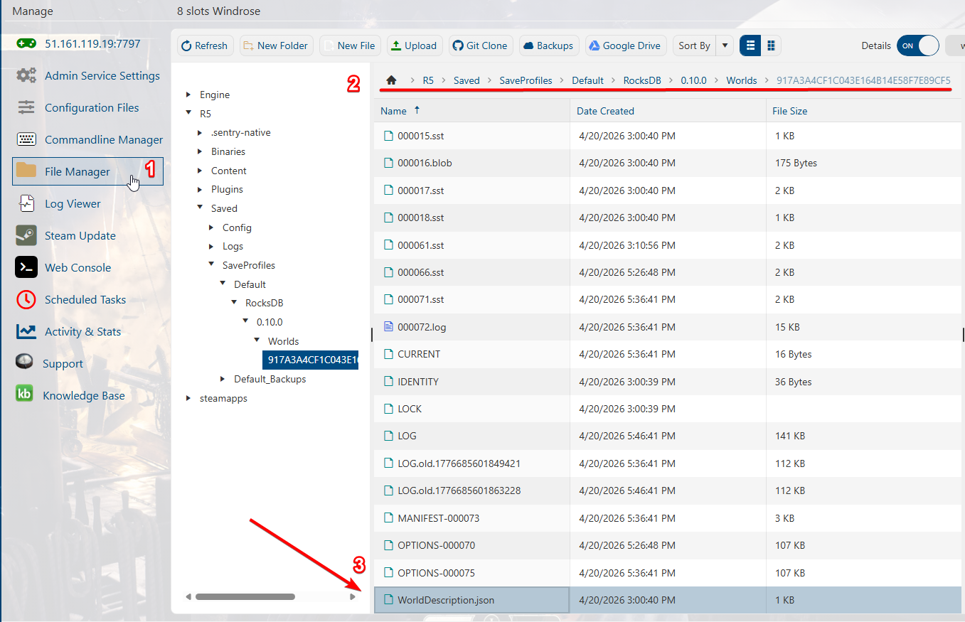 2. Open the File Manager and navigate to the "WorldDescription.json" file in