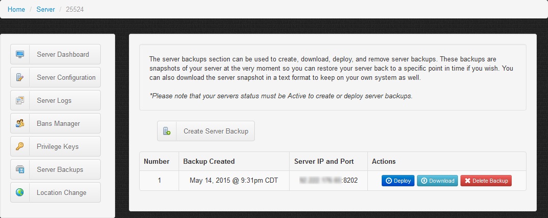 Backup and deploy it to your server from a click of the button, never worry about loss of server data again.